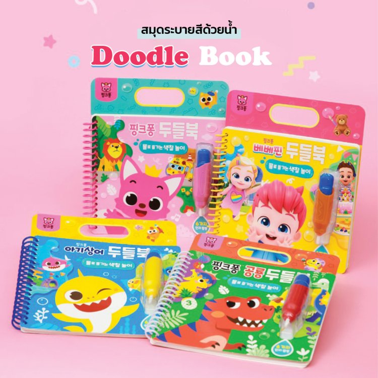 สมุดระบายสี ใช้แค่นำ้ 4 แบบ Baby Shark, Pinkfong, Dinosaur, Bebepin เมื่อน้ำแห้งแล้ว สีก็จะหายไป